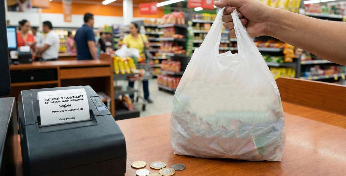 Mediante la Circular 000005 del 16 de diciembre de 2025, la DIAN confirmó que, a partir del 1 de enero de 2026, la tarifa del impuesto al consumo de bolsas plásticas será de $73 por bolsa plástica, un incremento de 5,30 % frente a los $70 vigentes en 2025.